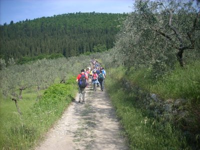 Walking over the hills, in the woods, by the ploughed fields, the visitor crosses areas of great landscape significance. You encounter monasteries, castles, hospices to welcome pilgrims, ancient walled communities, country churches, sections of paved roads that go back to Roman or Medieval times and ideally our eye is always on the old centre of the city of the lily whose focal point is the dome of the cathedral, the masterpiece of Filippo Brunelleschi, which identifies Florence.