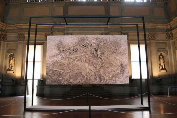FLORENCE, ITALY – The work “The Battle” by the Iranian artist Bizhan Bassiri is now exhibited at the Salone dei Cinquecento in Palazzo Vecchio, Florence, Italy.