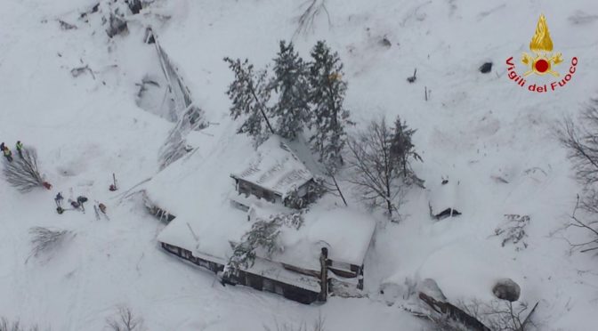 FIRENZE – Dopo le quattro fortissime scosse di terremoto che hanno colpito l’Italia centrale il 18 gennaio 2017, a pochi mesi dal sisma che ha distrutto Amatrice e altri paesi sugli Appennini, un’altra tragedia ha scosso quelle popolazioni: l’hotel Rigopiano a Farindola, sul Gran Sasso, è stato spazzato via da una slavina, probabilmente originata proprio dall’evento sismico.