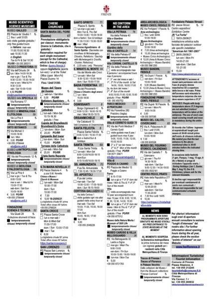 Here the official opening hours of the places of interest delivered by the Municipality of Florence and updated May 14, 2021. Download the PDF file.