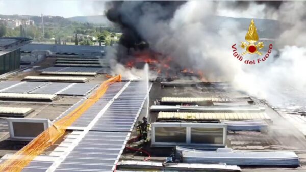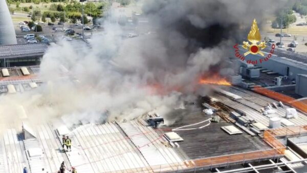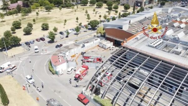 FLORENCE ITALY – A Coop shopping mall in Ponte a Greve, in the outskirts of Florence, was evacuated after the roof caught fire on Thursday June 3, 2021. Tar caught fire while building work on the roof was going on. A dense column of smoke was visible for miles.