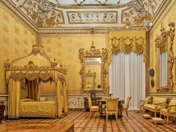 - The King’s Bedroom and Study: Originally part of Grand Prince Ferdinando’s private suite, these rooms were transformed by the Lorraine rulers and later adapted by the Savoy for King Umberto I. The study features a refined 18th-century French desk once owned by the Duchess of Parma.
