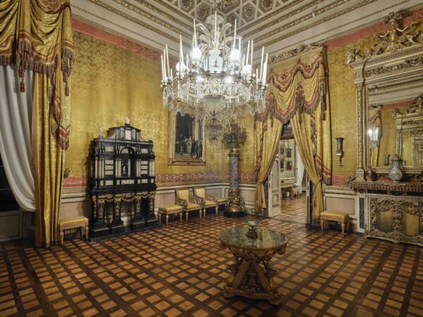 The restoration was an extensive and complex endeavor carried out by a multidisciplinary team of specialists. Their meticulous work included a wide range of interventions, from the ceilings to the floors, where carpets and old moquettes were removed to reveal impeccably preserved parquet. An in-depth cleaning and conservation campaign was also undertaken, restoring frescoes, stuccoes, carvings, silk wall coverings, draperies, paintings, furniture, and decorative objects. The decorative style of the Royal Apartments is a unique blend that reflects the tastes and eras of its various inhabitants over the centuries. Now, these rooms are once again open daily to the public, with guided visits available every hour.