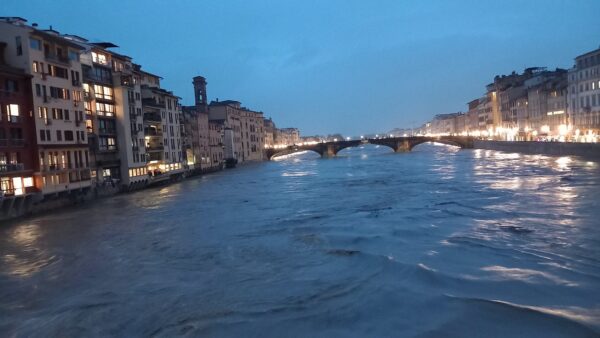As of March 14, at 8:50 PM, the “flood peak” of the Arno River was passing through Florence, registering a water level of 4.29 meters at the Uffizi hydrometer station. This exceeds the first warning level of 3 meters but remains below the second warning threshold of 5.50 meters. The regional civil protection authorities have reported a river flow of 1,466 cubic meters per second.