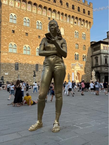 In the heart of a square once ruled by Renaissance ideals of power and perfection, a golden statue of an ordinary woman is stirring up extraordinary debate. Her presence is quiet, but the questions she raises about race, gender, and visibility in public space are anything but.