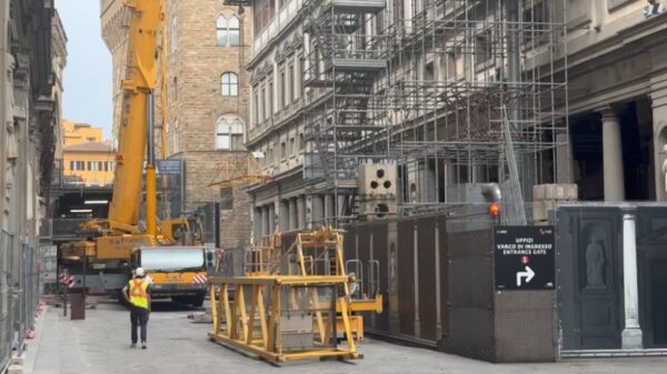The crane has called the squares outside of the gallery — Piazzale degli Uffizi and the Piazza della Signoria — its home for 20 years, the result of a long-term expansion project for the gallery. The crane, a heavily criticized and debated presence, is expected to be removed by June 21, with a celebratory event marking its removal, featuring the Italian Minister of Culture, Alessandro Giuli, in attendance.