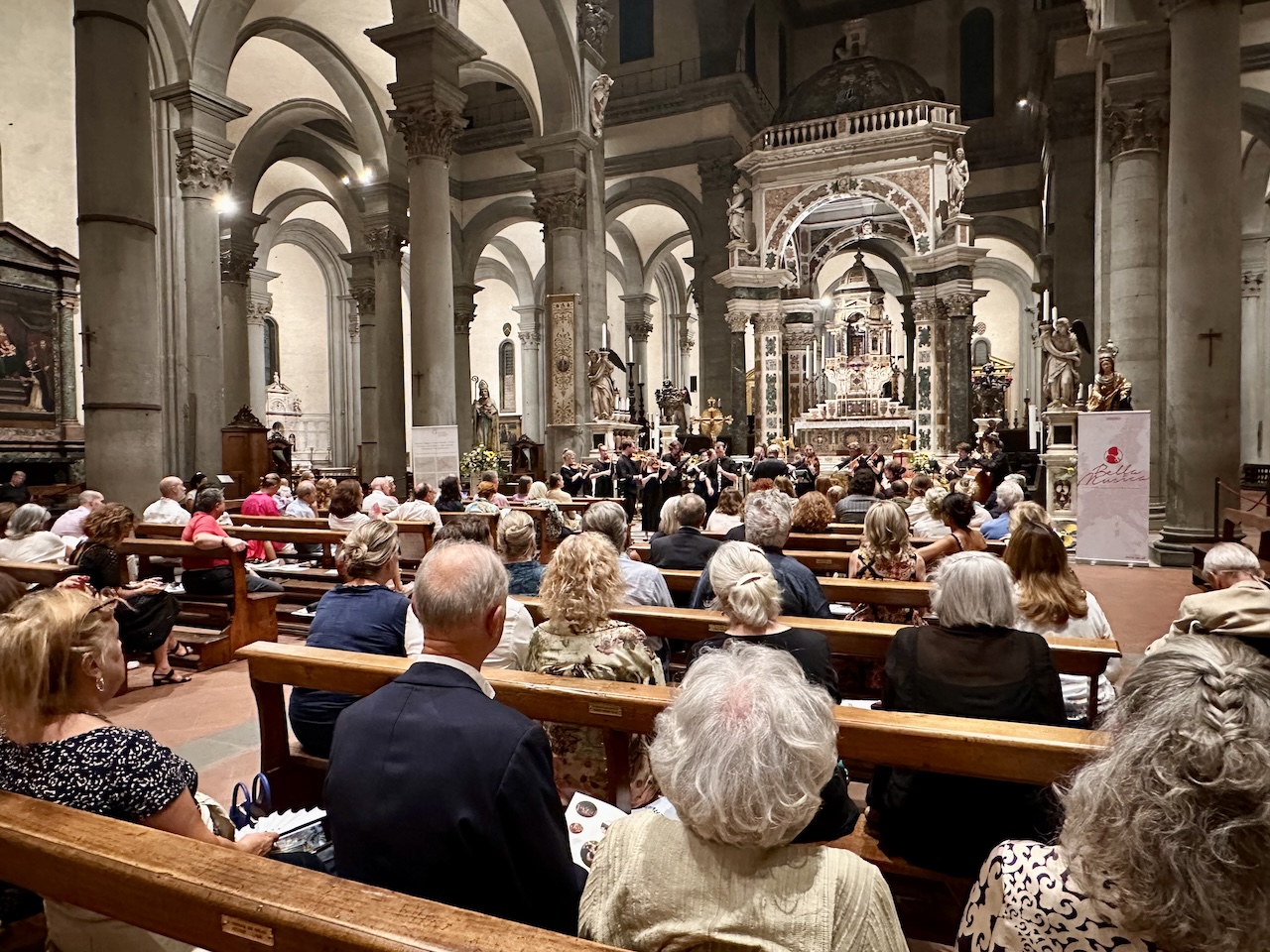 The concert was held on August 28, the feast day of Saint Augustine, inside the basilica founded by the Augustinians in Florence. The coincidence added symbolic resonance to the evening, with music accompanying a place of centuries-old history and spirituality.
