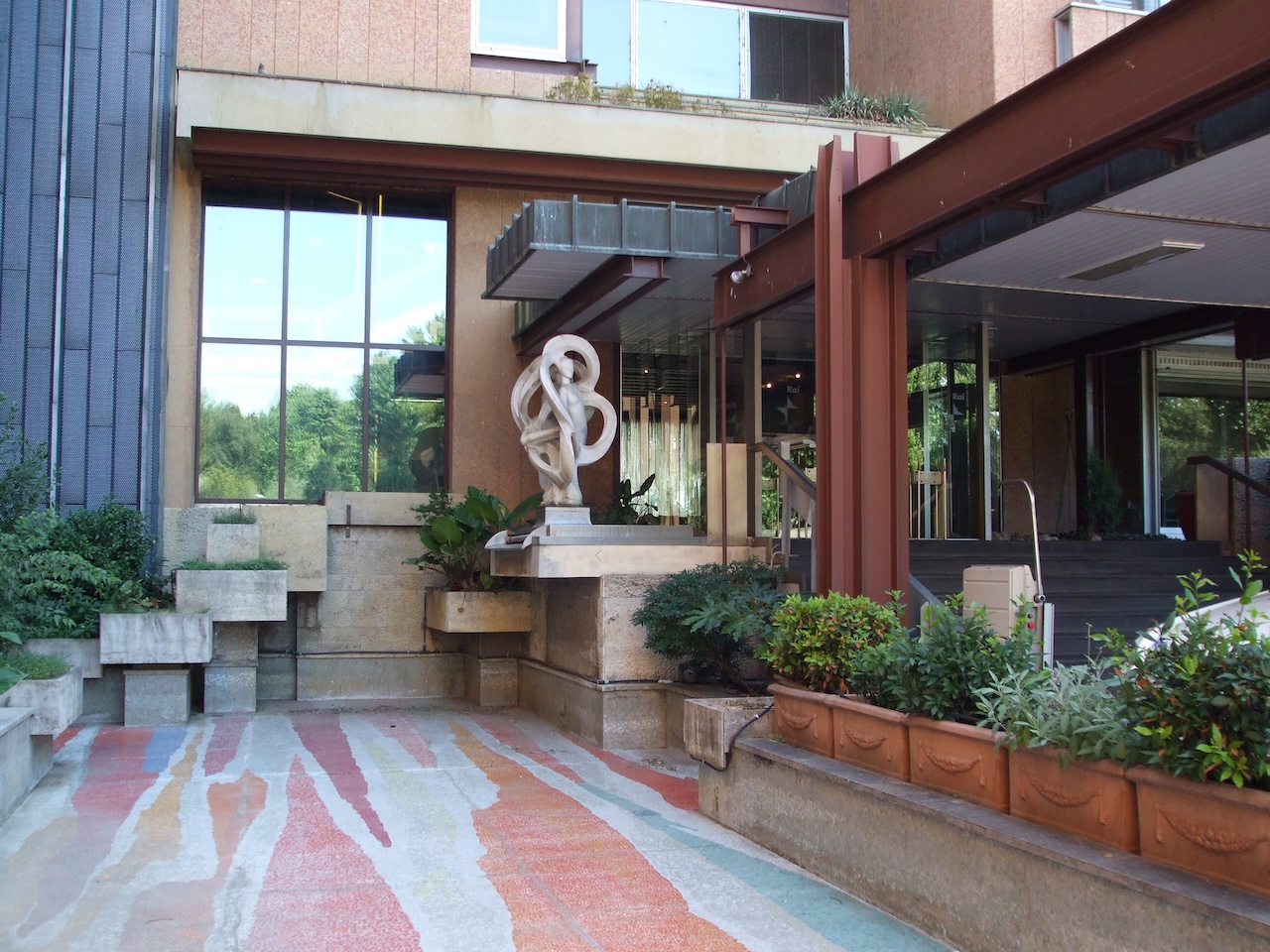The complex includes numerous works of contemporary art, such as Le Onde della Radio by Quinto Martini, Volo di gabbiani by Sauro Cavallini, and a large stained glass window by Guido Polloni. Its geometric concrete structure and large internal spaces embody the aesthetic of a new media age, when television and radio were symbols of progress.