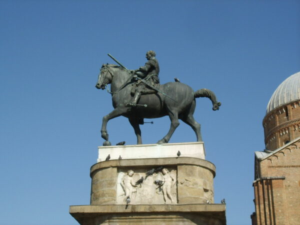 Created by Donatello between 1447 and 1453, the Gattamelata was commissioned by the family of the condottiere with the approval of the Venetian Senate and installed in front of the Basilica several years later. It was the first monumental bronze equestrian statue of the Renaissance, a work that redefined the very idea of public sculpture in Europe.