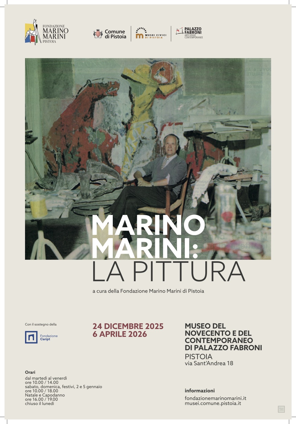 From 24 December 2025 to 6 April 2026, the Museo del Novecento e del Contemporaneo di Palazzo Fabroni in Pistoia, about 40 kilometres northwest of Florence, hosts Marino Marini: La pittura. The exhibition brings together a wide selection of paintings by Marino Marini, offering an overview of a part of his work that has long remained in the shadow of his sculpture.