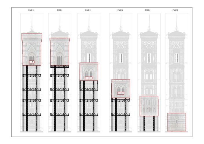Restoration will proceed in phases, starting from the top and gradually moving downward. As each section is completed, the scaffold will be lowered, revealing the restored surfaces.