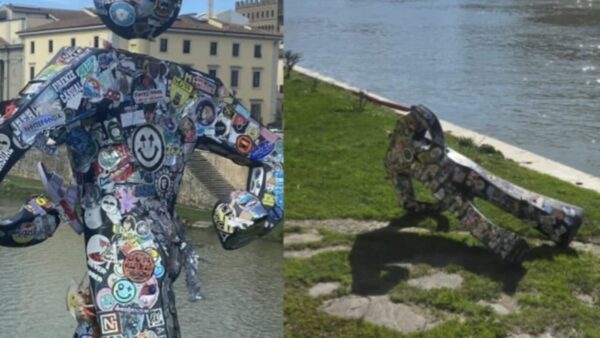 One of Florence’s best-known contemporary art installations has been vandalised. The “Common Man” statue by French artist Clet Abraham was torn down from Ponte alle Grazie overnight and thrown into the River Arno.