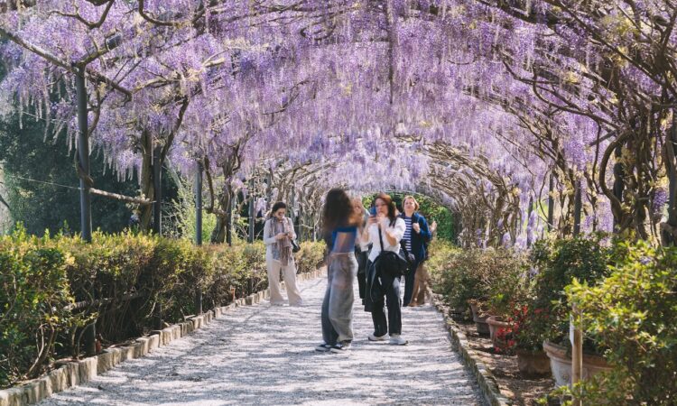 The wisteria pergola at Giardino Bardini has started to bloom, marking one of Florence’s most recognisable seasonal events. The flowering typically lasts for about ten days, offering a short window to see the tunnel at its peak.